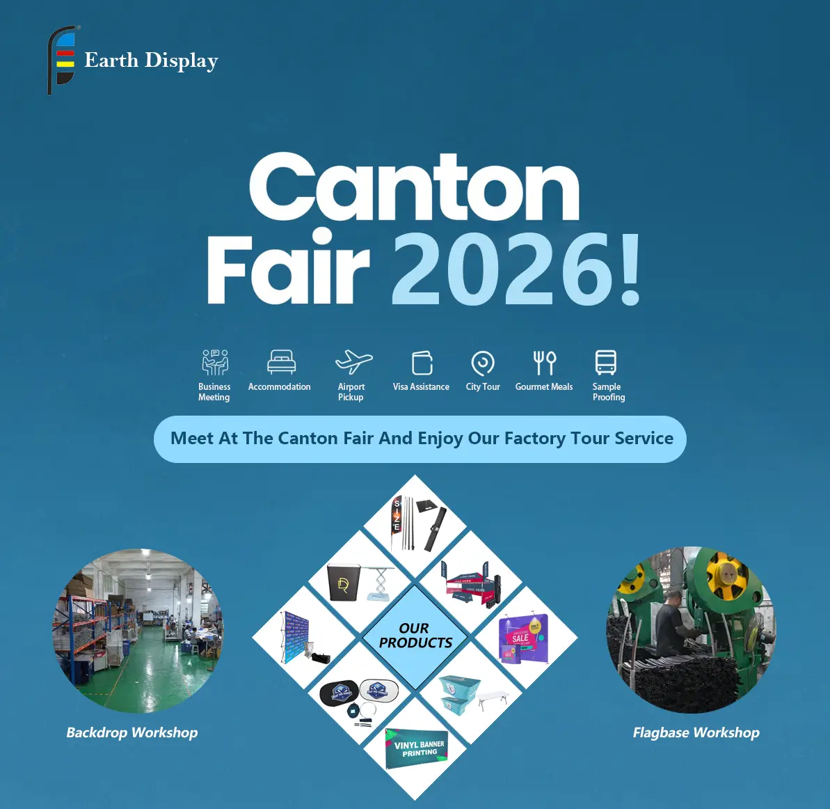 Наближається Кантонський ярмарок 2026 року, і ми в Earth Display дуже сподіваємося побачити вас там. Ми виготовляємо прапори з пір’ям, спливаючі фони, основи для прапорів, нестандартні вінілові банери – практично все для виставок і реклами – вже більше десяти років. Цього разу замість того, щоб просто спілкуватися онлайн, ми хочемо показати вам, що ми робимо, віч-на-віч.